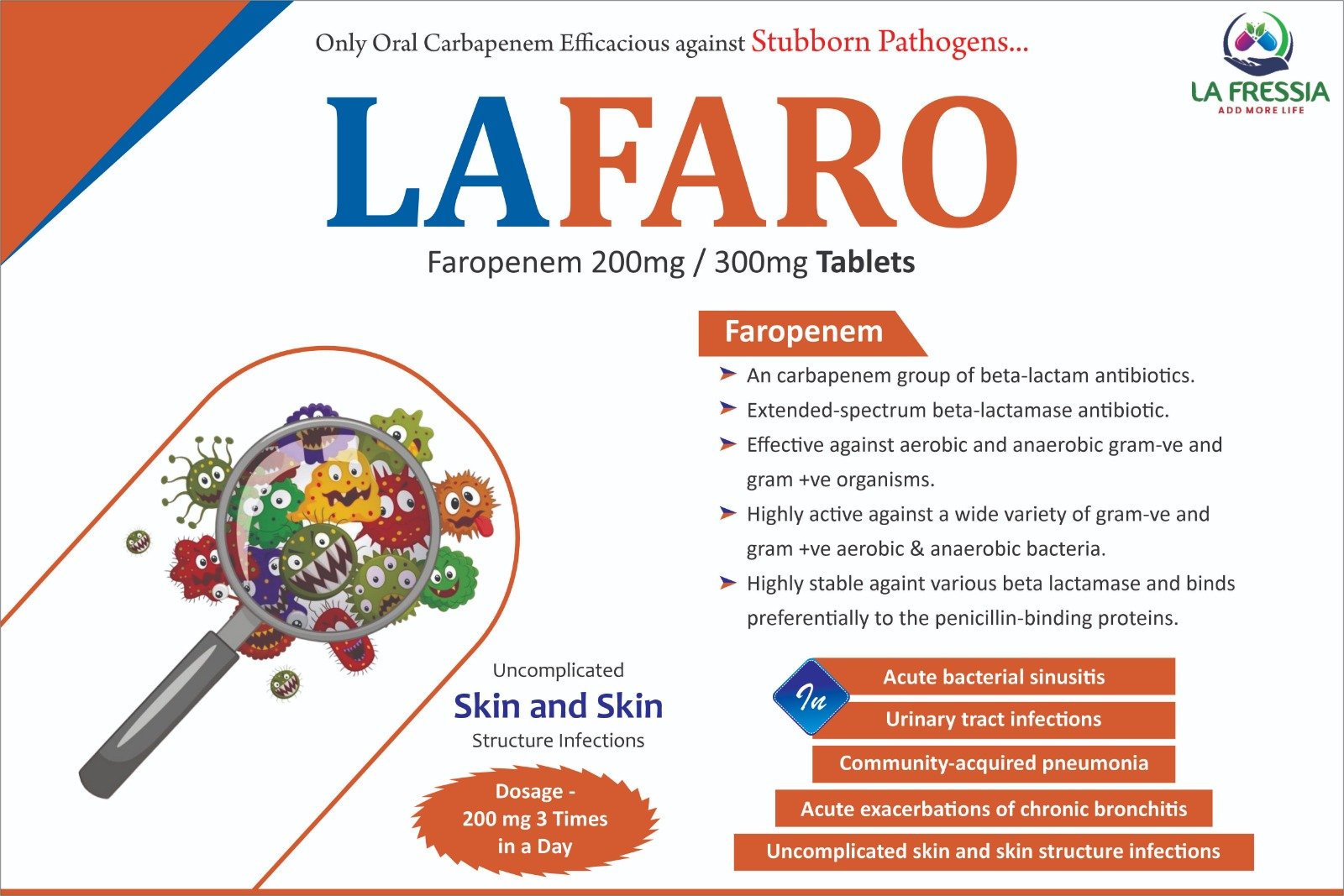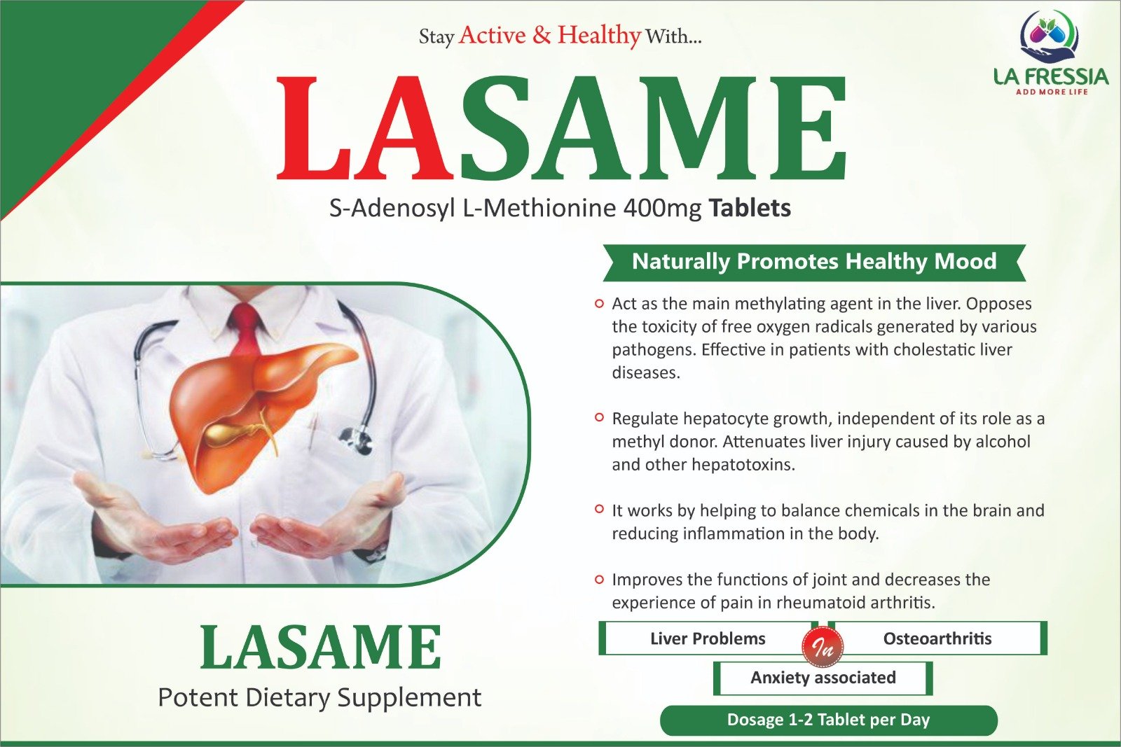 Our Products Page: Our Products Our Products HEPASSIA SACHE Most of the vehicles damage as maintenance neglect. RIBOTHIA TABLES Most of the vehicles damage as maintenance neglect. SIAPRAZ-IT Esomeprazole 40mg + Itopride 150mg Capsule MEBELA Mebeverine HCl 200 mg Capsules LAFARO Faropenem 200 mg / 300 mg Tablets LA SAME S-Adenosyl L-Methionine 400 mg Tablets UDILA 300 / 450 Ursodeoxycholic Acid 300mg / 450mg SR MIDOSSIA Midodrine 2.5mg / 5mg Tablets LA-GLUTA Brand LA Fressia LA FIBRE (Lactitol Monohydrate 10g + Ispaghula Husk 3.5g Granules) RIBOTHIA IV Brand: La Frescia